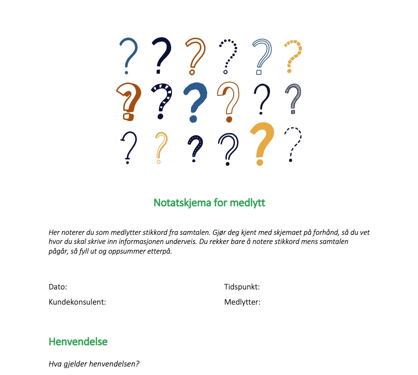 Det er viktig å la kundekonsulentene gjøre jobben sin. Unngå å gripe inn og heller innta en «flue på veggen» rolle. I tilfelle du lurer på noe knyttet til henvendelsen, kan dere prate om fremgangsmåten i etterkant. Det viktigste er å forstå hvorfor henvendelsen oppstod i utgangspunktet og om det kunne bli unngått?
